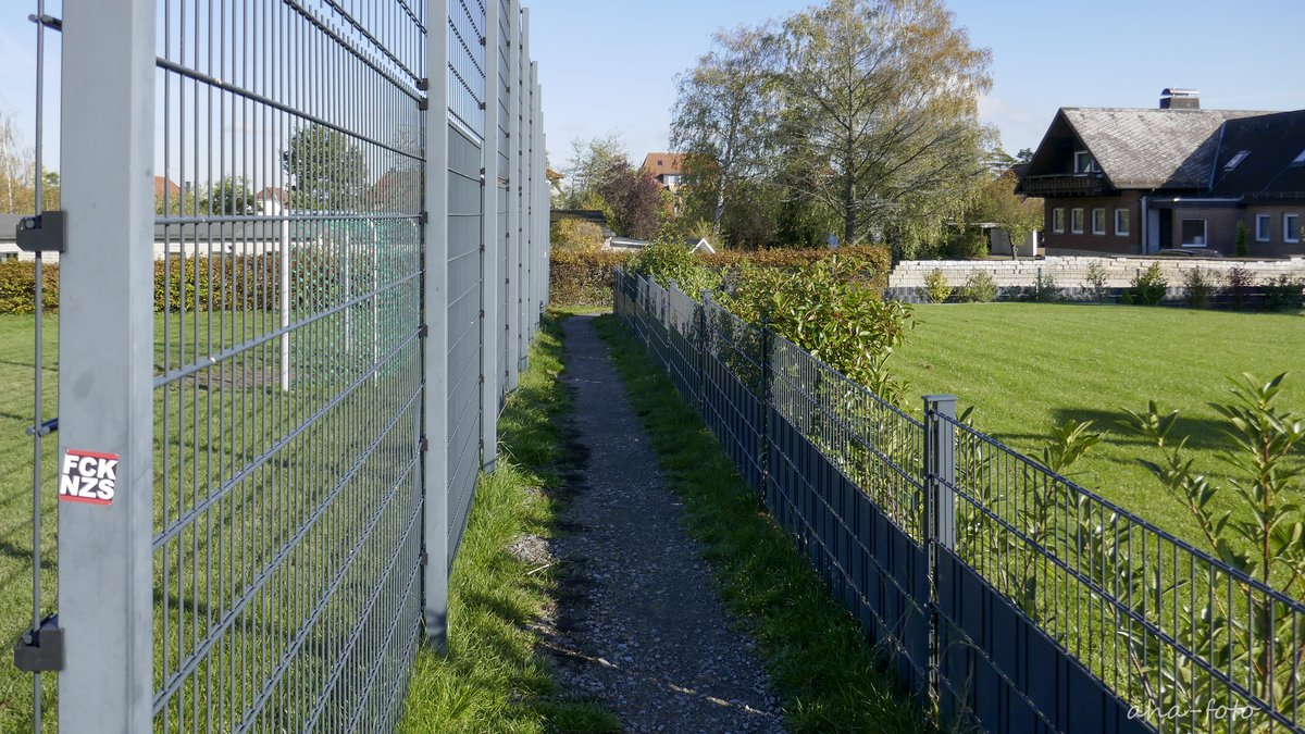 - c) Der in Pkt. 2.2 erwähnte Fußweg, der beim Grundstück Birkengrasebrink 28 beginnend am Bolzplatz vorbei in Richtung Rottkampweg führt, sollte auf Höhe des Bolzplatzes zu dessen Lasten unbedingt verbreitert werden, da diese „hohle Gasse“ sehr häufig auch von Radfahrern frequentiert wird.