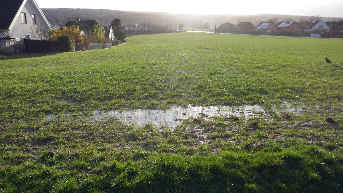Im Frühjahr 2019 hatten wir zwar keinen Starkregen, aber ich habe einige Fotos gemacht, um die Situation ein wenig zu dokumentieren. Die Fotos sind nummeriert in diesem Vortrag enthalten. Auf der Karte (Seite 4) finden Sie (handschriftlich ergänzt) die Aufnahmestandorte zu den Fotos.Der Bebauungsplan muss meiner Meinung nach dringend um ein bodenkundliches Gutachten und ein hydraulisches Konzept ergänzt werden.