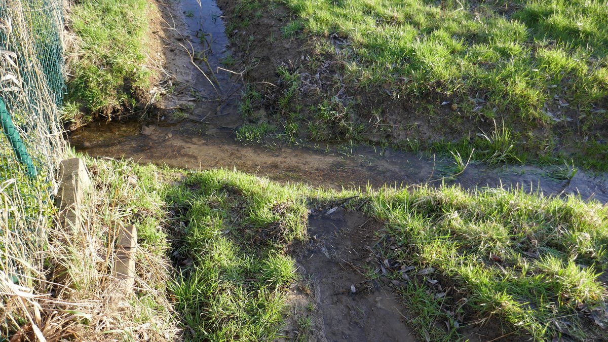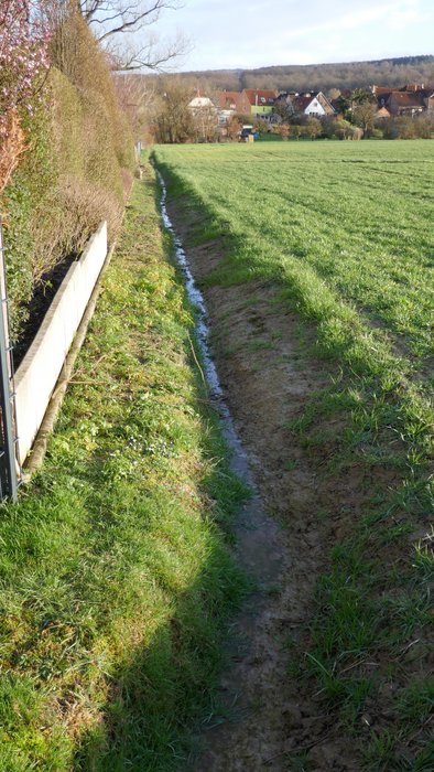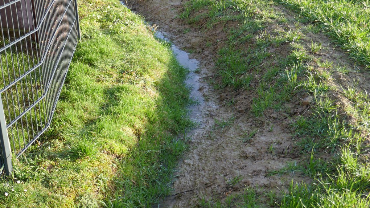 In der Vergangenheit, nach Empfehlung der Stadtentwässerung Barsinghausen, war ich gezwungen selber für einen ordentlichen Abfluss mittels eines kleinen Grabens zu sorgen, der dann in den vom Regenrückhaltebecken kommenden Bach mündet.